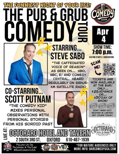 The Pub & Grub Comedy Tour is coming to the Octoraro Tavern !